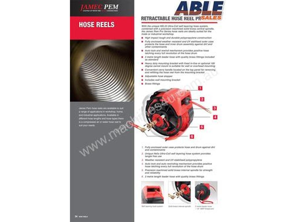 Jamec Pem is an Australian brand and wholly owned division of Primus Australia Pty Ltd that has been manufacturing since the 1930andrsquo;s. It has established a strong reputation for product quality and innovation. With market leading products such as the 310 series couplings and the TDR series tyre inflators, Jamec Pem is committed to Australian manufacturing, ongoing product and market development along with a dedication to exceptional customer service. With the unique HELIX Ultra-Coil self layering hose system, combined with a precision machined solid brass central spindle, the Jamec Pem Pro Series hose reels are ideally suited for the trade or industrial workshop with the following features;