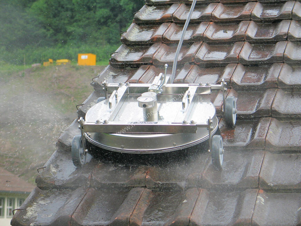 The roof cleaner is an industrial quality tool can be used quickly and efficiently as the operator stands safely on the ridge. Security, stability as well as cleaning results are emphasized. This stainless steel unit will provide optimal performance under harsh conditions.